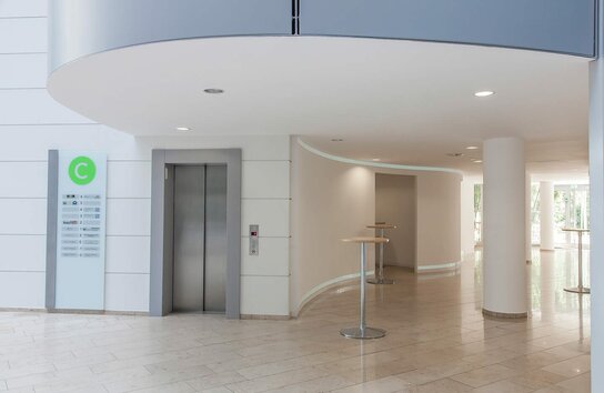 - Aufwendige Aufwertung des Eingangsbereiches mit einem LED-Medientor, einem neuen Empfangscounter sowie einer futuristisch anmutenden Aufenthaltszone