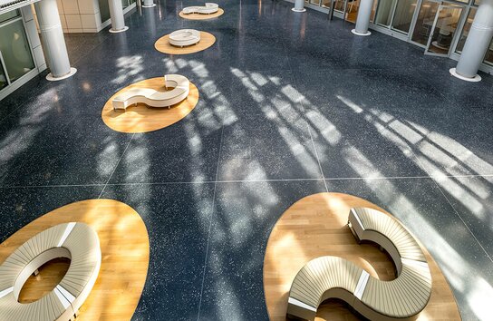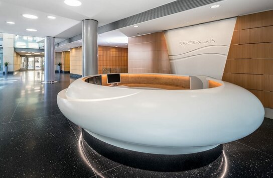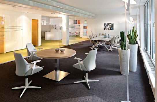 - Repräsentatives, glasüberdachtes Atrium mit Meeting-Points und zentralem Empfangsdesk